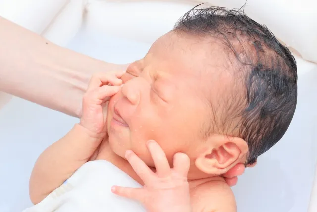 - 目にお湯がかかる:顔にお湯がかかるのを嫌がって泣くことがあります